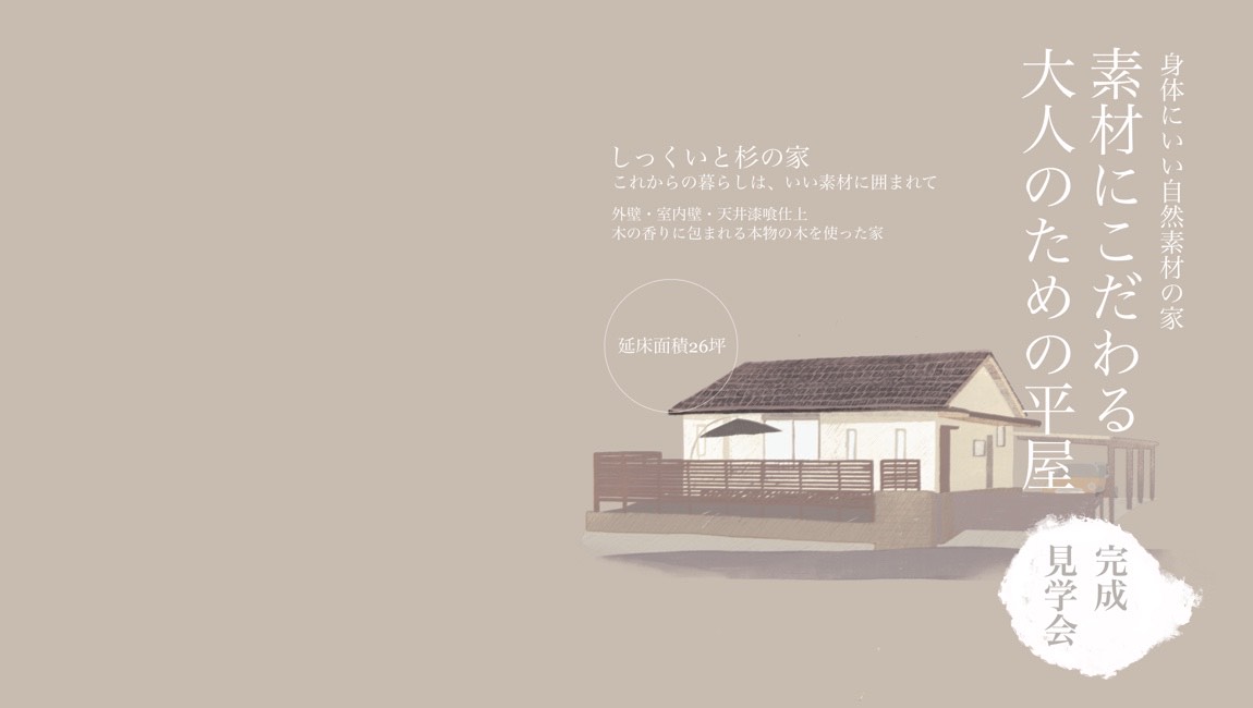 素材にこだわる大人の平屋 完成見学会 香芝市【5/30(土)・31(日)】