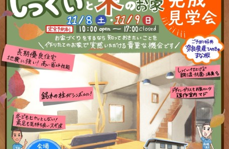 ヒノキの枝付き丸太が杉田工務店加工場に