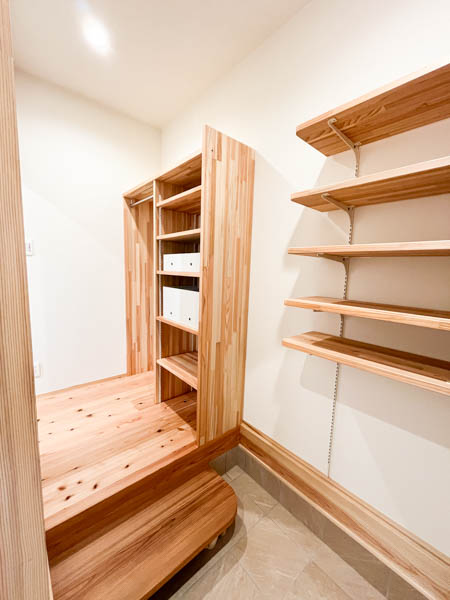 敷台の下はオープンにして靴を下に収納できるようにするなど