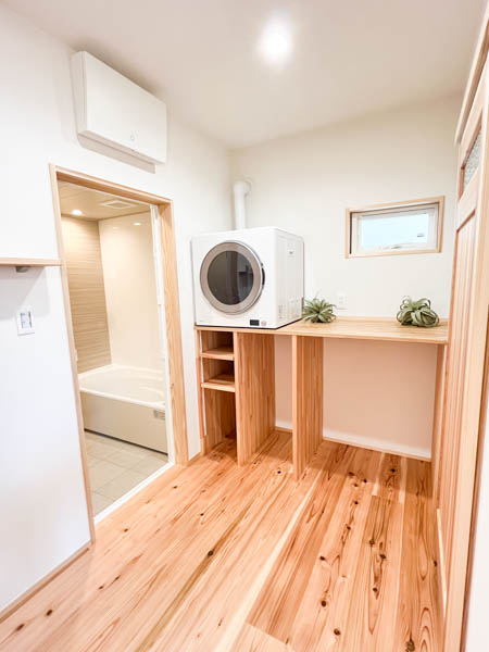 更にその奥はランドリースペース、お風呂場へとつながっているので汚れた服をそのまま洗濯機に出せますね。