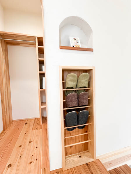 お家に入ると玄関ホールですが、容量たっぷりのシューズクロークに靴のまま入ることが出来て