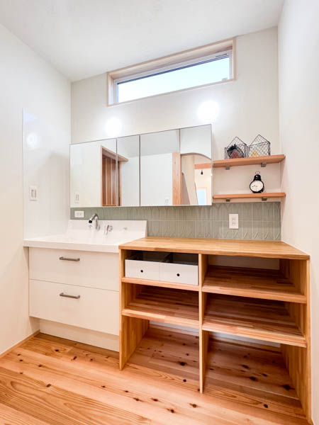洗面スペースやトイレにも入れたいものに合わせて作った造作カウンターを設置しました。